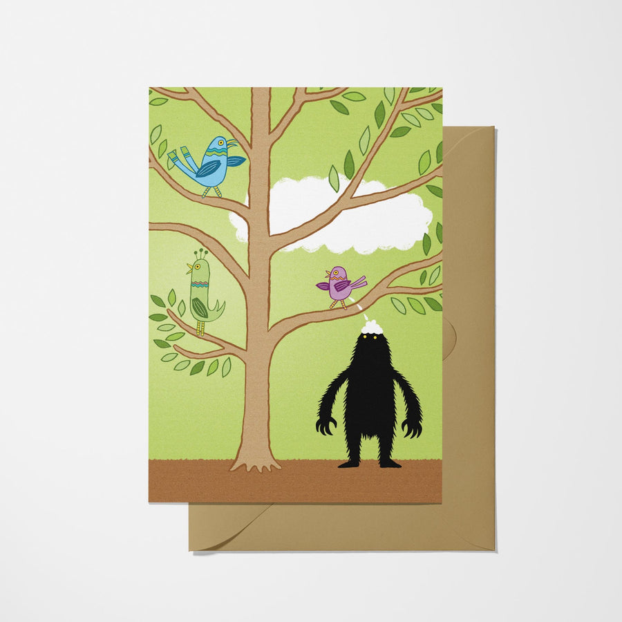 Card with a cloud-like creature illustration against a blue sky on a white background