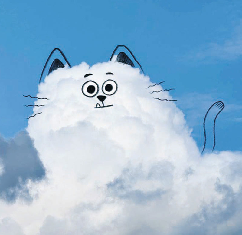 Card with a cat-shaped cloud design against a blue sky on a white background